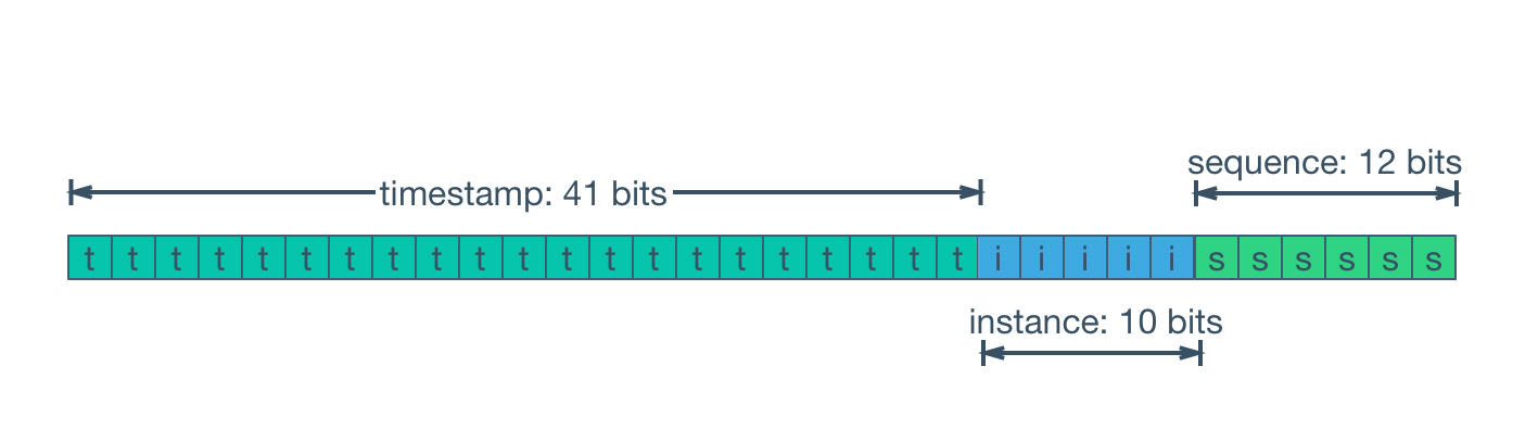 - 타임스탬프 값을 앞 쪽 비트 자리에 배치하여 시간이 지남에 따라 점점 커지는 값이기 때문에 큰 값일수록 나중에 만들어진 것을 확인할 수 있는 의미를 가지며, 나아가 어떤 데이터 센터에서 어떤 인스턴스가 생성한 키라는 것도 알 수 있다.